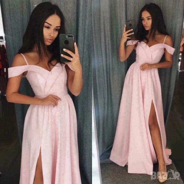 официални рокли с паднали рамене и цепка → Обява 51599744