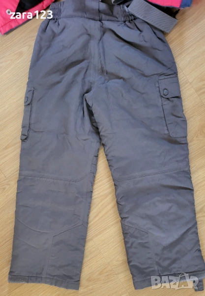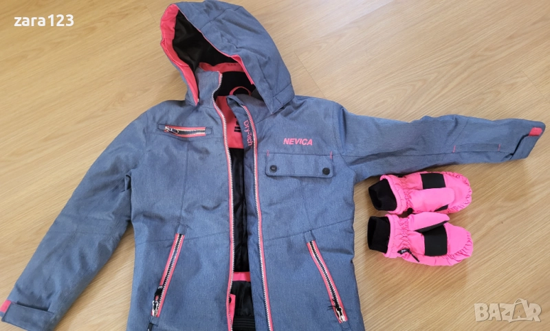 Якето е nevica, с воден стълб 10000мм, ски панталонът е на френската марка Vertbaudet, а ръкавичките са McKinley. В добро използвано състояние.
