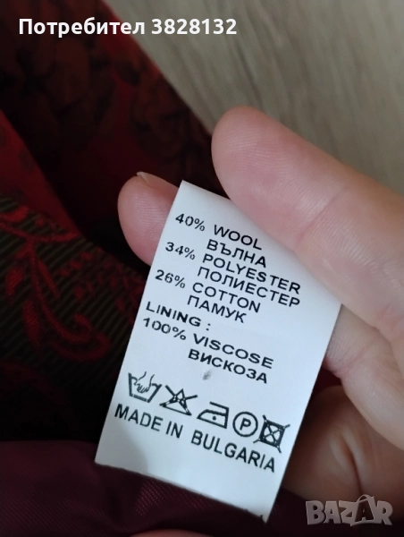 дамско сако, вталено, цветен плат 40%вълна, много добра кройка и стои страхотно на фигурата, марка Zory, българска фирма, класически модел, подходящо за пола и рокля, малко дискретно вътрешно джобче;), българска номерация, за европейска вероятно ще е L-XL