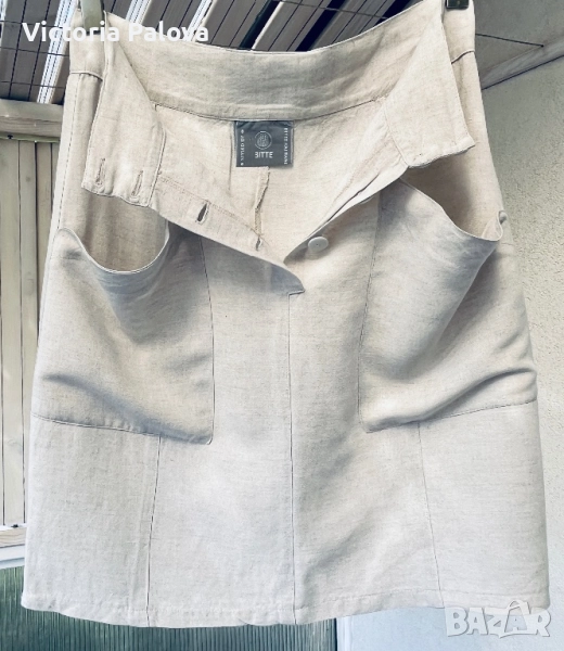Дизайнерите BITTE KAI RAND се стремят да създават конфекция, която не е само красива, но и удобна и комфортна. Талия - 40см, дължина - 54см, ханш - 51см, широчината на колана - 6см. Лен( 55%) и вискоза (45%).