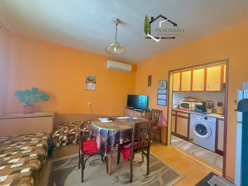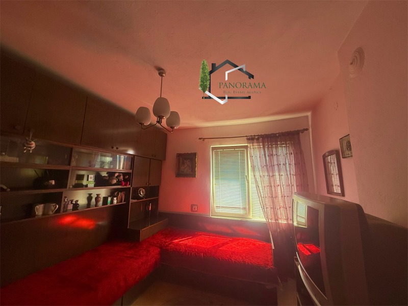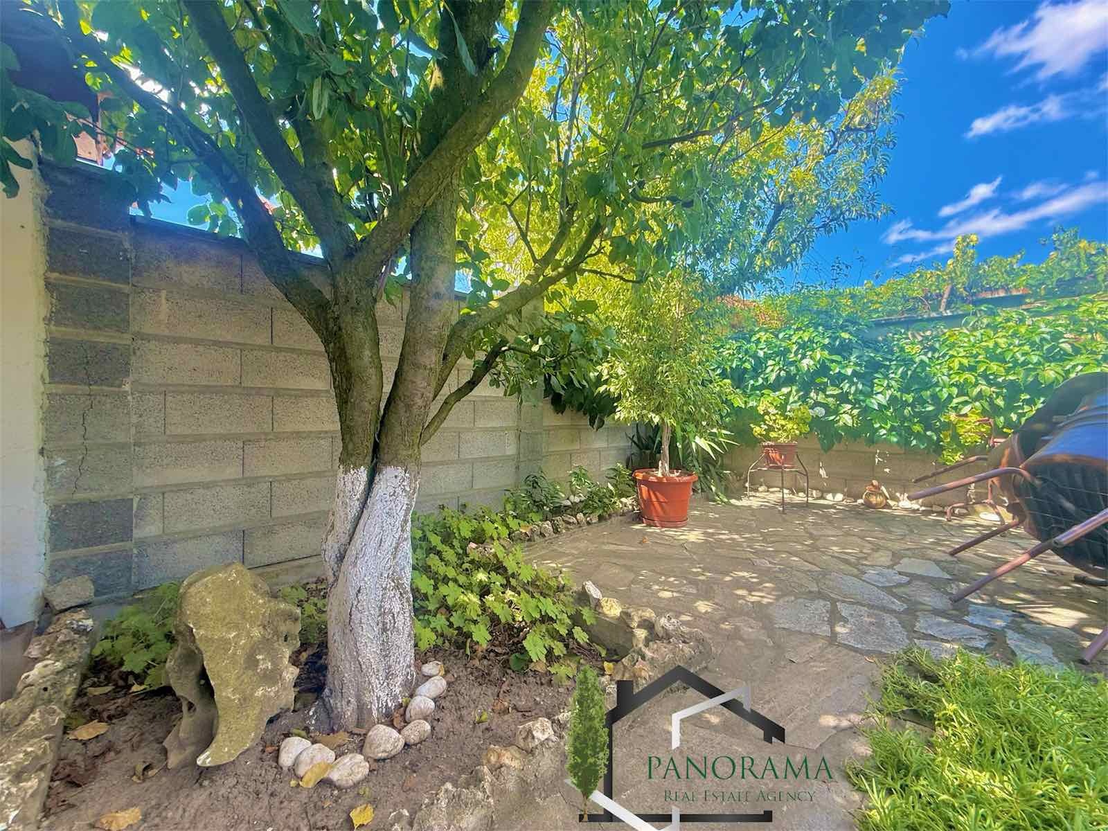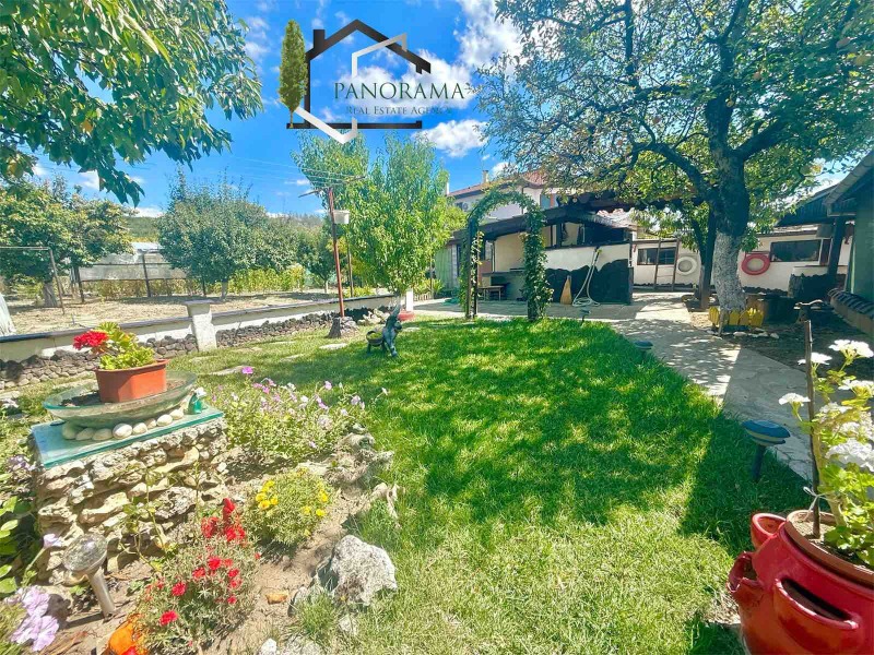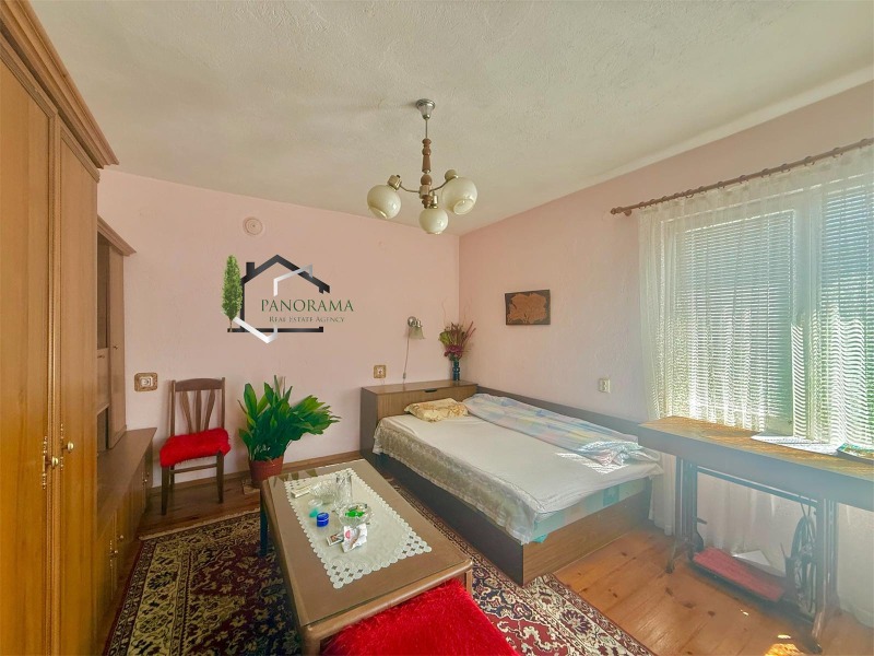 Тухлена къща на плоча с гараж, с площ от 86кв.м в с. Хан Крум. Разпределението е както следва: входно антре, коридор, хол, кухненски бокс, три спални, баня и тоалетна. Разполага с две механи - открита и закрита. Имотът се предлага напълно обзаведен и с всички необходими ел. уреди. Разполага с овощна градина, пълноводен кладенец, голяма тухлена постройка с площ от 32кв.м, дървен навес, беседка и външна тоалетна. Дворът на къщата е с площ от 830 кв,м - равен, с правилна форма и с голямо лице към асфалтова улица. Гаража към имота е тухлен с площ 23 кв.м