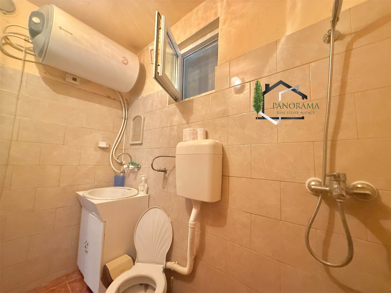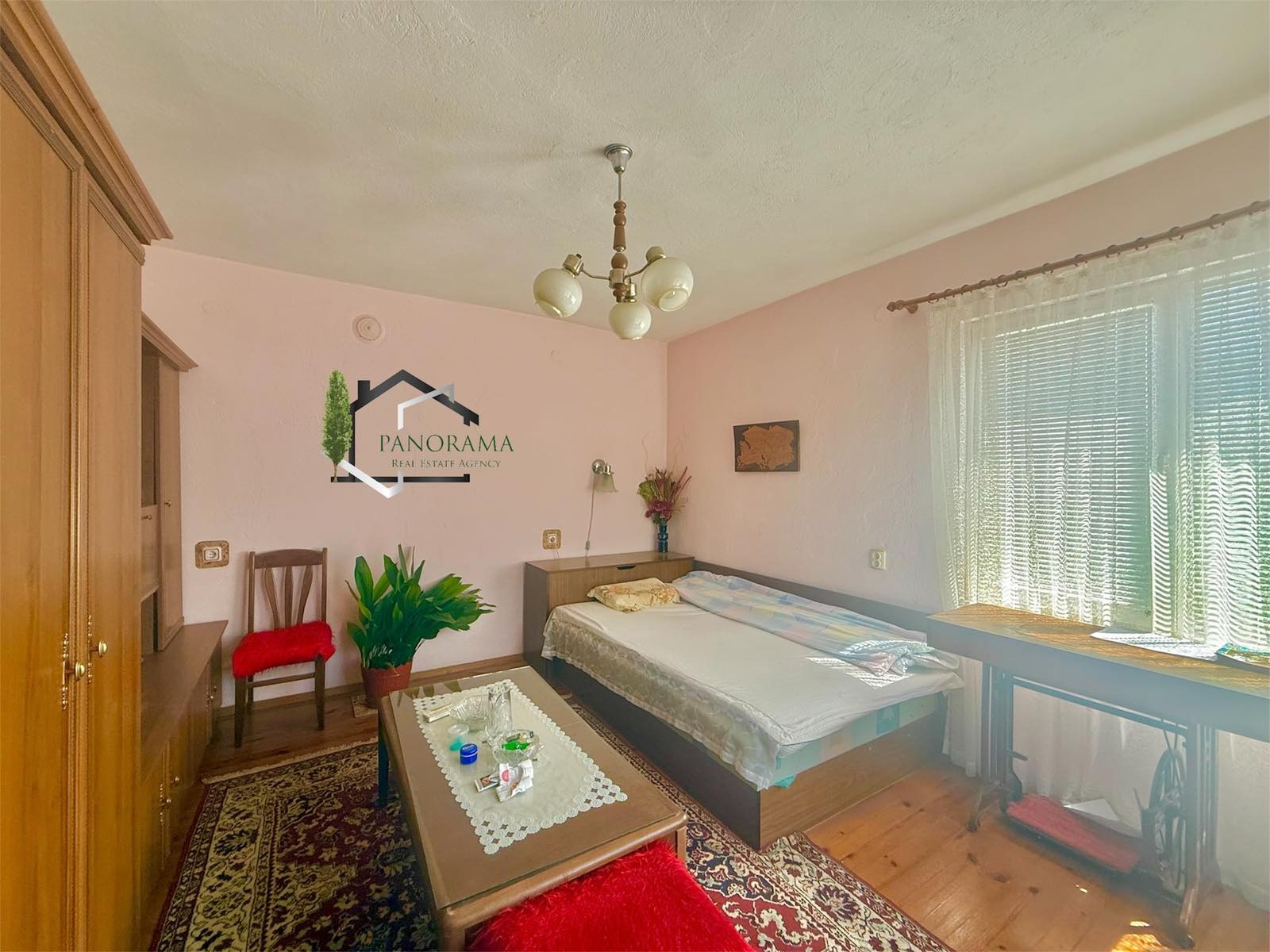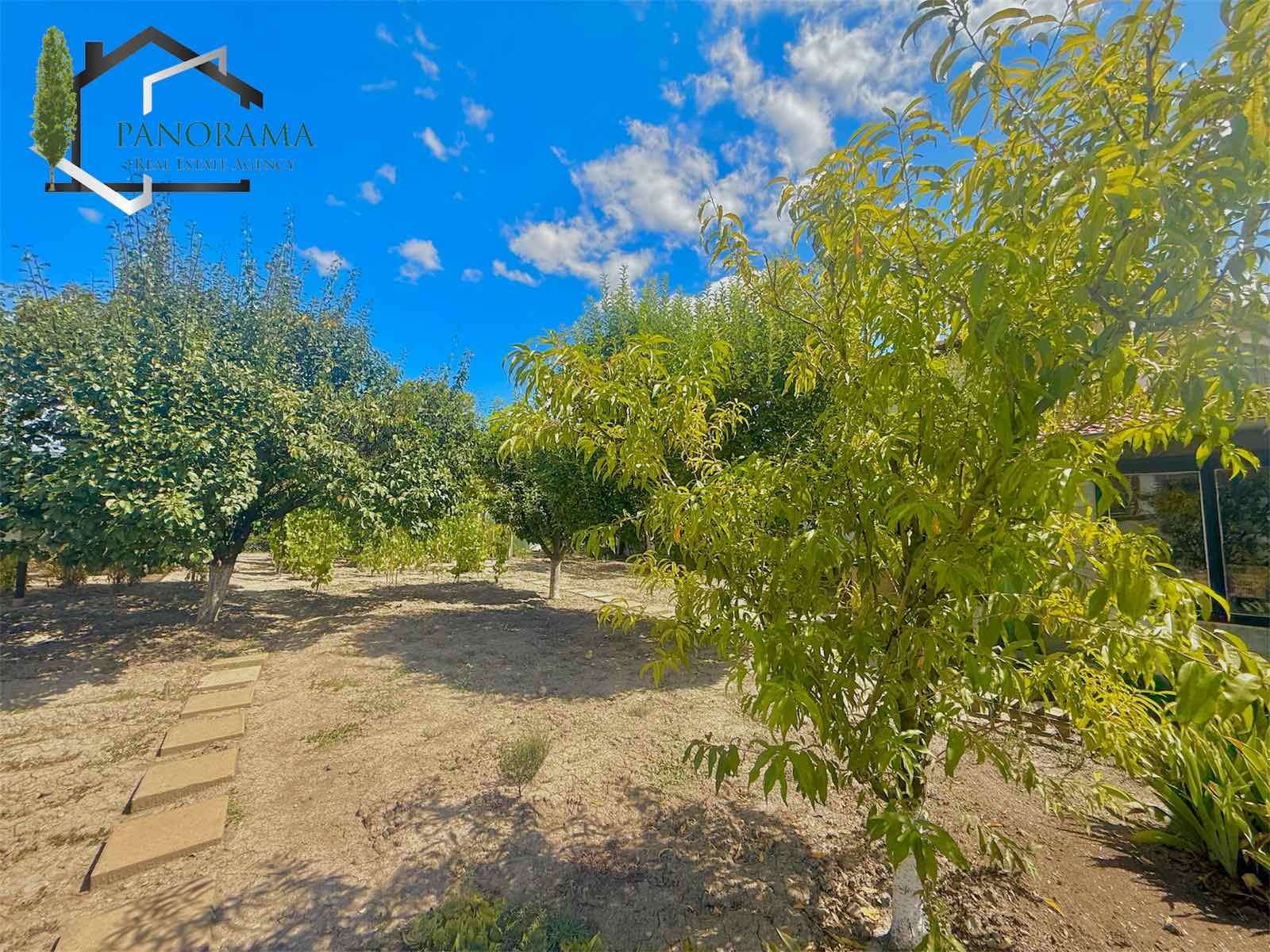 Тухлена къща на плоча с гараж, с площ от 86кв.м в с. Хан Крум. Разпределението е както следва: входно антре, коридор, хол, кухненски бокс, три спални, баня и тоалетна. Разполага с две механи - открита и закрита. Имотът се предлага напълно обзаведен и с всички необходими ел. уреди. Разполага с овощна градина, пълноводен кладенец, голяма тухлена постройка с площ от 32кв.м, дървен навес, беседка и външна тоалетна. Дворът на къщата е с площ от 830 кв,м - равен, с правилна форма и с голямо лице към асфалтова улица. Гаража към имота е тухлен с площ 23 кв.м