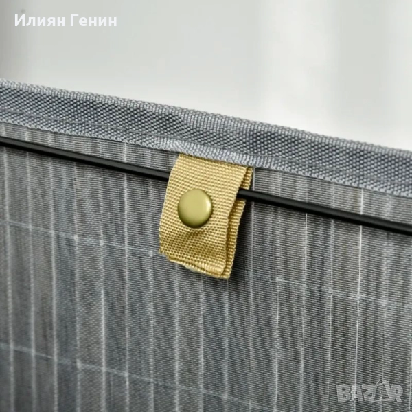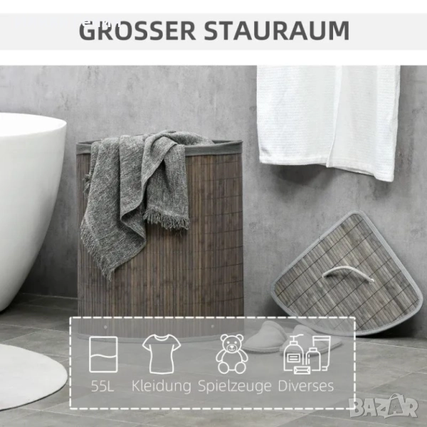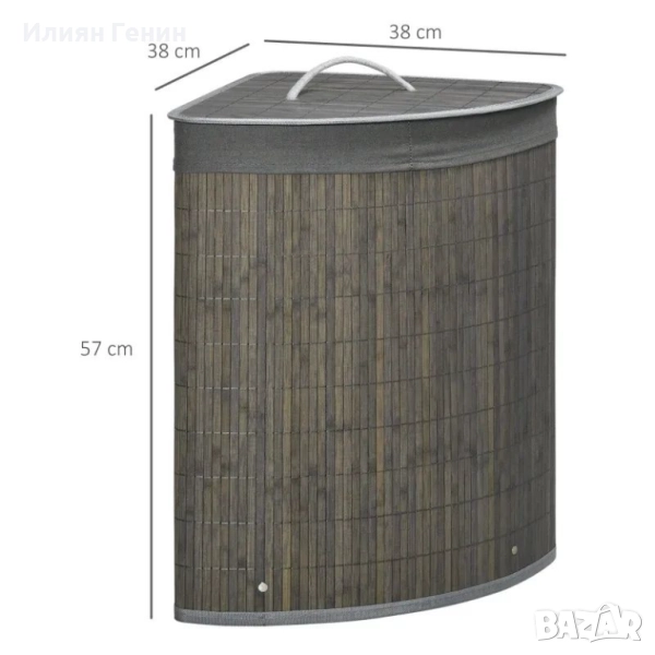 Ъглов кош за пране HOMCOM 55 л с капак, дръжка, сортировчик за пране с подвижна торба за баня, бамбук, сив - 40.00лв.