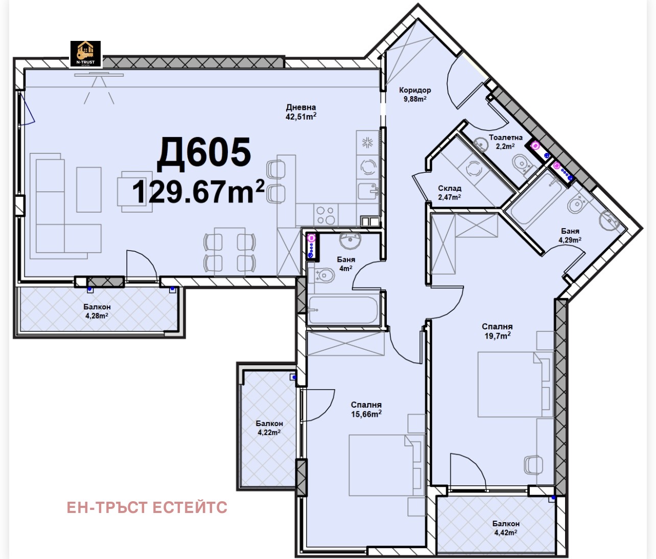 Апартамента с разположен на седми етаж и е със застроена площ от 129.67кв.м.