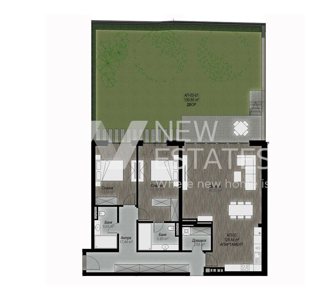 Собствен двор: 151 кв.м