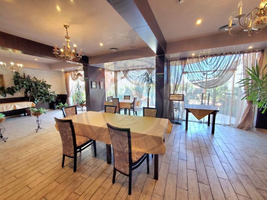 В сутерена заведението за хранене е със зала за хранене с 36 места, като барът участва в интериора на залата. Има двойна тоалетна за посетителите, ориентирана към залата, добре прикрита зад интериорна колона. Предвидена е възможност за вътрешна камина. Вътрешността на заведението за хранене е заета от кухня, съобразно технологичен проект, подготвителни, миялна, склад за продукти, битовка за персонала и помещение за смет. В двора към ресторанта има лятна градина /40 - 50 места / с барбекю. В градината има изграден басейн с размери 9x5 метра. До басейна е разположена лятна кухня и барбекю с допълнителни маси за хранене.