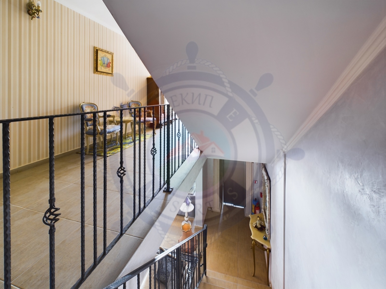 Интериорните мебели, разположени в общите части на сградата фоайе и емпорета са бутикови, от масивно дърво, месинг, естествен камък /оникс, гранит, и др./