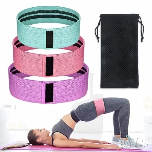 Удобни текстилни ластици за тренировка - комплект 3 броя