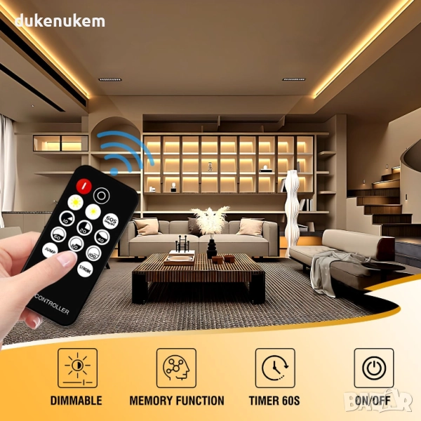 Димираща функция (10% – 100%) с RF дистанционно управление