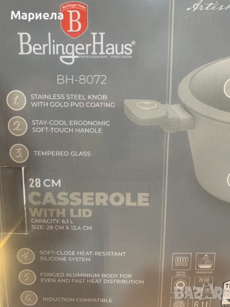Тенджера с капак, Berlinger Haus ,BH 8072 28 см Сахара