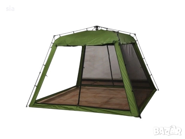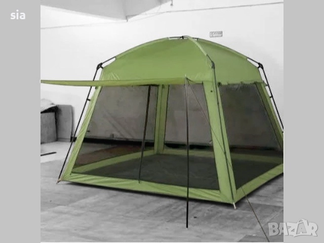 Къмпинг палатката с размери 320х320х220 см е лека и лесно преносима, предназначена за до 6-ма души. Тя осигурява защита от атмосферни условия като дъжд, вятър и слънце, и е проектирана да бъде лесна за монтаж и демонтаж. Може да се използва като палатка и като шатра.