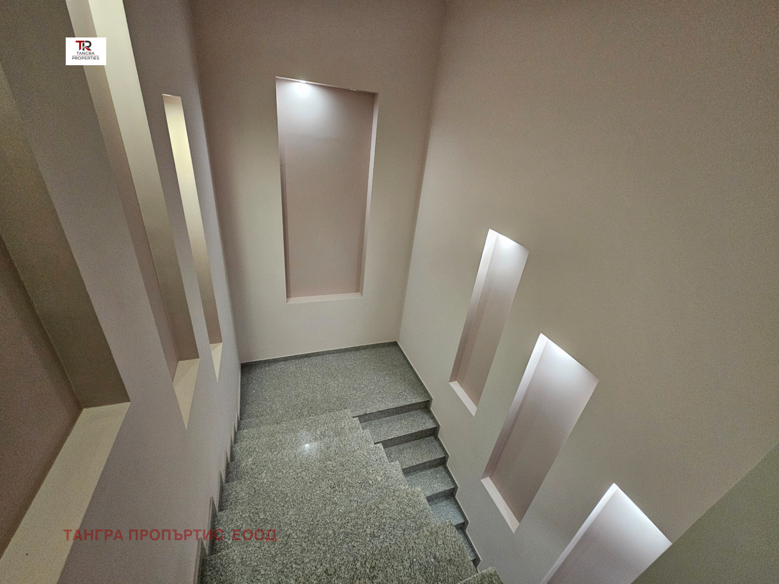 Жилището се намира на втори етаж в малка сграда ново строителство с площ по документ за собственостот 74,8 кв.м и с 1/2 от правото на собственост на стълбище . Луксозни общи части и само по два апартамента на етаж със собствен вход за двете жилища.