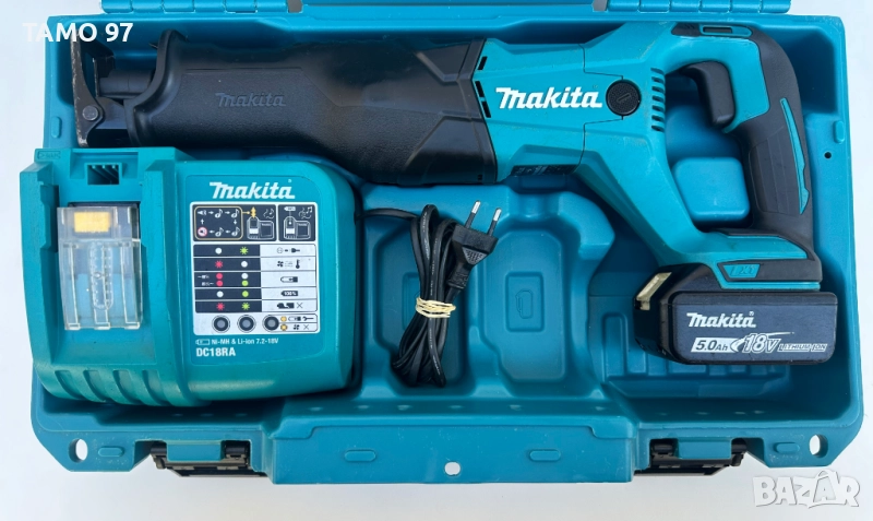 Продавам акумулаторен саблен трион на Макита в отлично визуално състояние, както се вижда на снимките и работи перфектно, производство от 2022г. внос от Франция. Обявената цена включва триона, една батерия 18V 5.0Ah с индикатор, импулсно зарядно и оригинален куфар. Пращаме с опция преглед и тест с куриерска фирма еконт, може и лично предаване за гр. Шумен.
