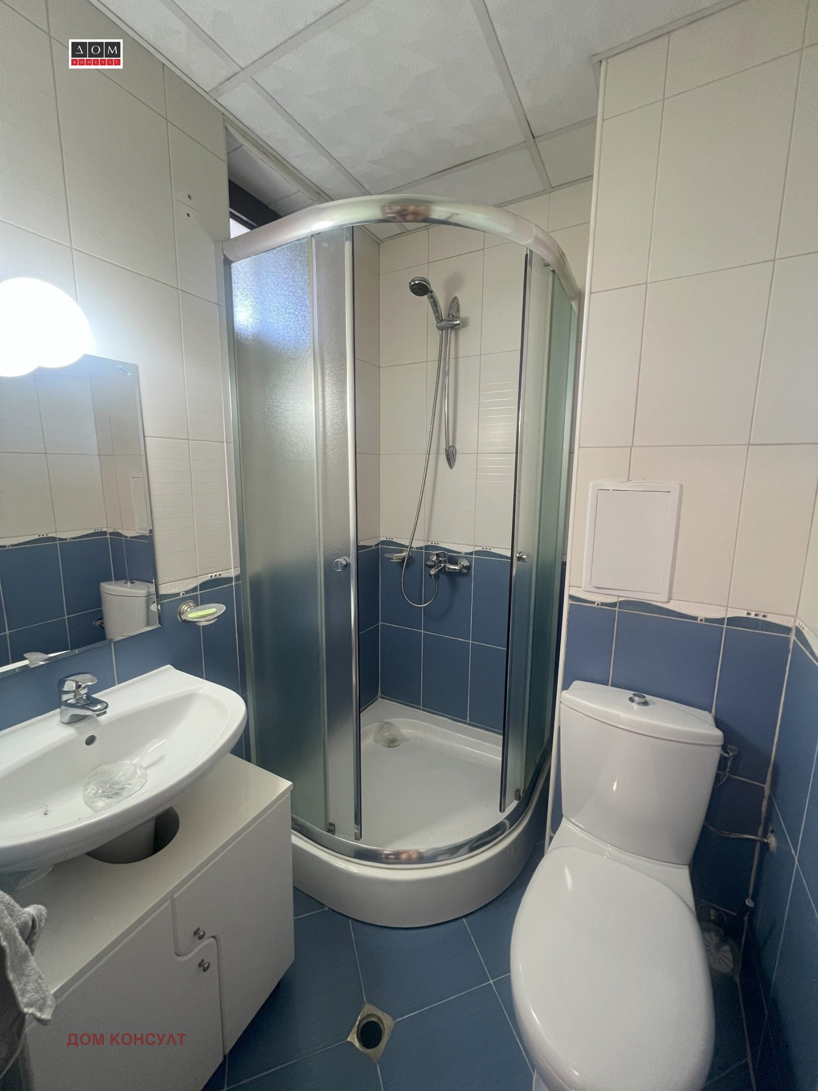 Душ-кабина, моноблок, шкаф с мивка и огледало