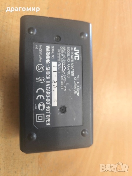 продавам зарядно устройство, JVC AA-V70EG AC POWER ADAPTOR, имам още много други фотоапарати, камери, обективи, чанти, светкавици, батерии, зарядни устройства, касети, филтри, ремъци, ленти, при закупуване на повече неща отстъпка