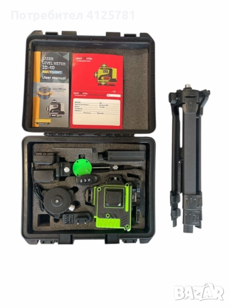 4D Лазерен Нивелир с 16 Линии (Четири Точков), Самонивелиращ се, със Зелен Лазер с тринога