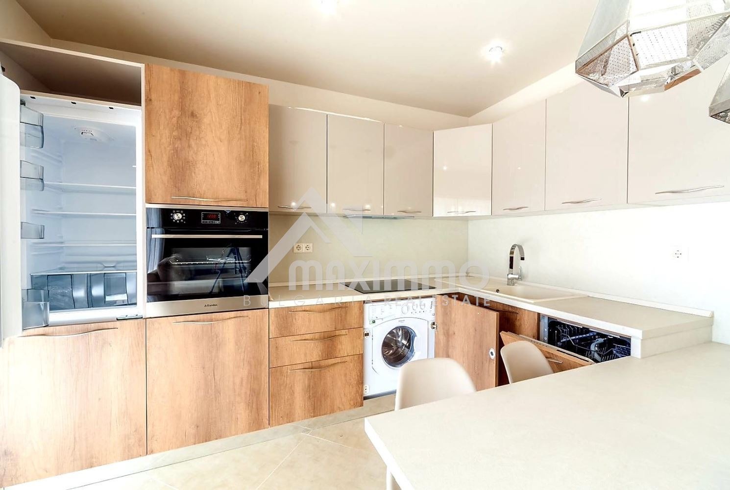 Обзаведен по дизайнерски проект за удобство на живущите, с нови мебели и уреди във всички стаи, очакващи своите наематели!