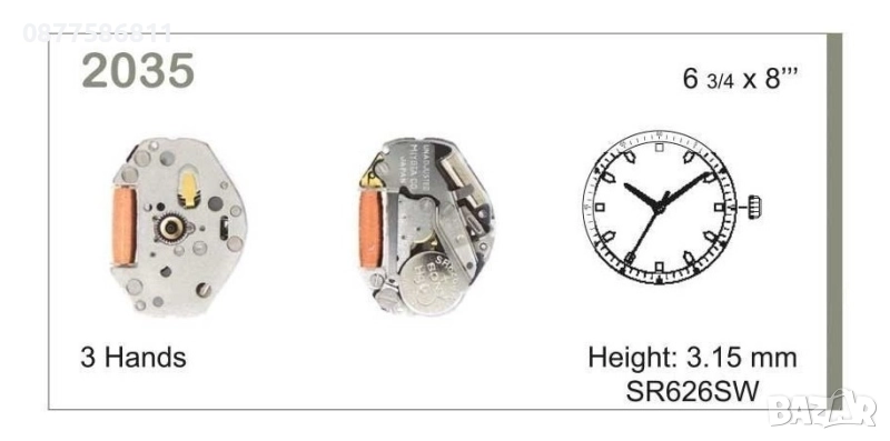 Механизми за ръчен часовник Miyota и Hattori PC.