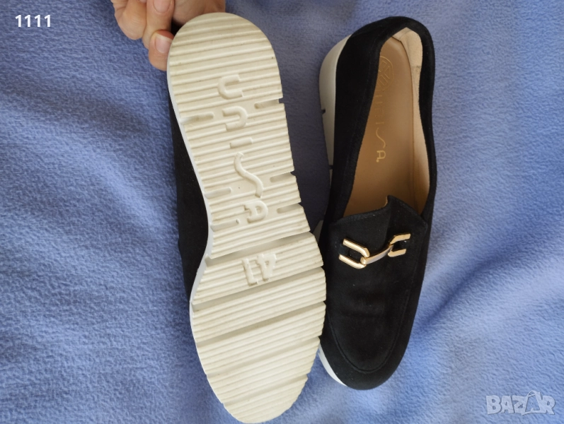 Обувките са обувани с едва доловими следи от употреба са.Черен естествен велур.Удобни и комфортни.Номер 41 с дължина на стелката 26,5см.Височина 5см.Цена 55лв.