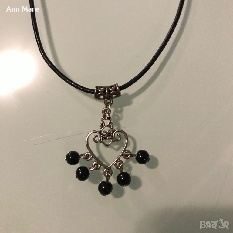 2. Колие със сърце от стомана и шнур. Чисто ново, не е носено.