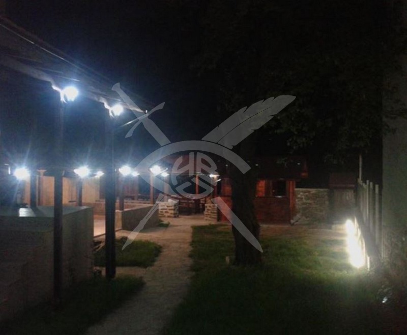Втори етаж: три стаи и с по три легла и две стаи с по две легла, две бани с тоалетни, още една баня и тоалетна, отделна тоалетна, лятна кухня и механа и фитнес зала.