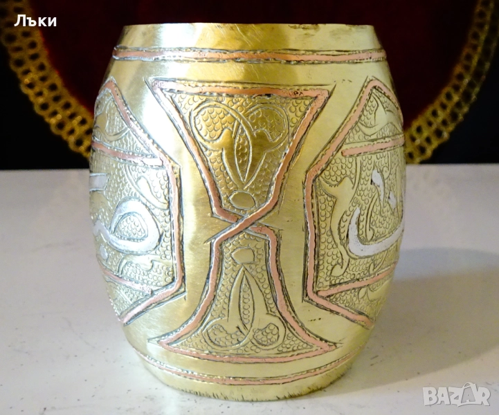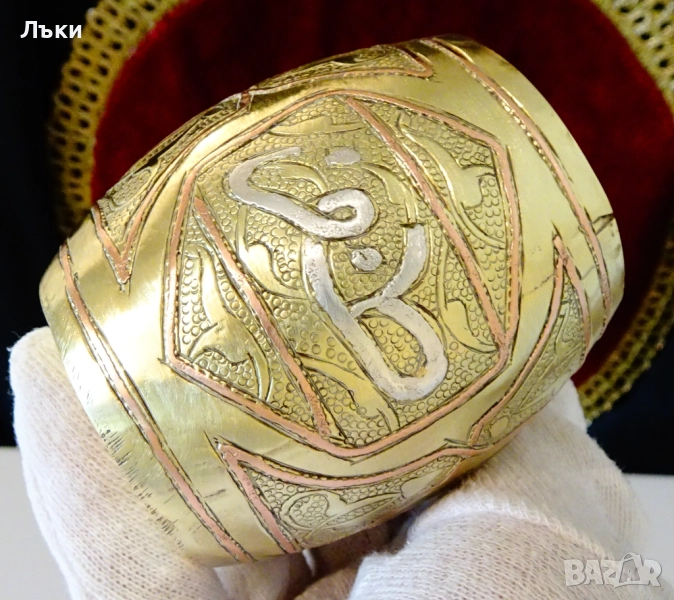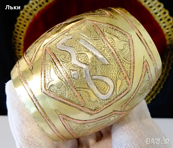 орнаменти,инкрустирана с арабска калиграфия от сребро,обградена с рамки от
