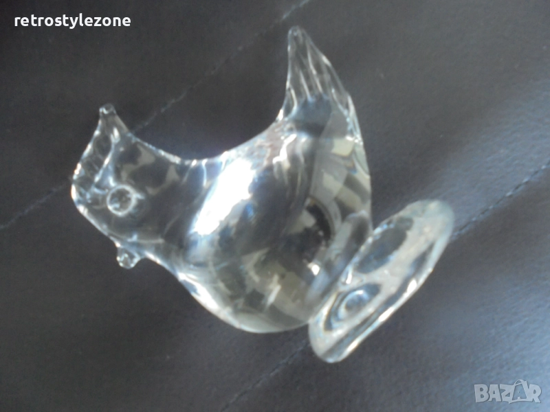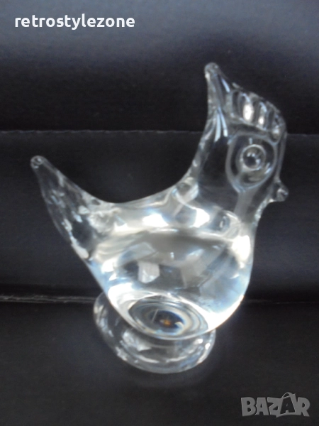 Стара изящна стъклена фигурка на птичка, изработена с внимание към детайла. Кристалната чистота на стъклото и плавните линии ѝ придават усещане за елегантност и лекота.