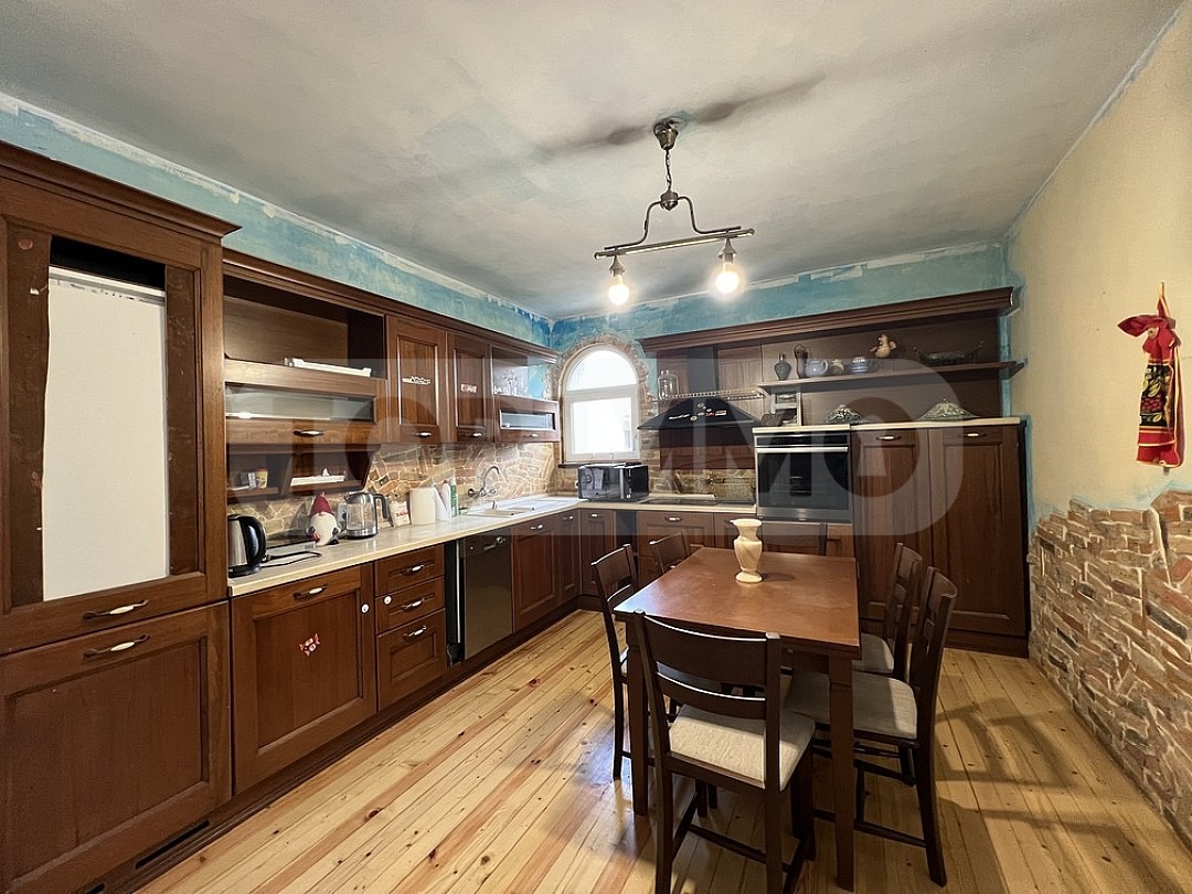 Имотът е частично обзаведен. Къщата разполага с 4 климатика, 2 перални, напълно оборудвана кухня с хладилник, керамични котлони, фурна, микровълнова.
