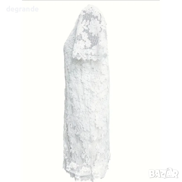 дамска лятна рокля от бяла дантела с къс ръкав