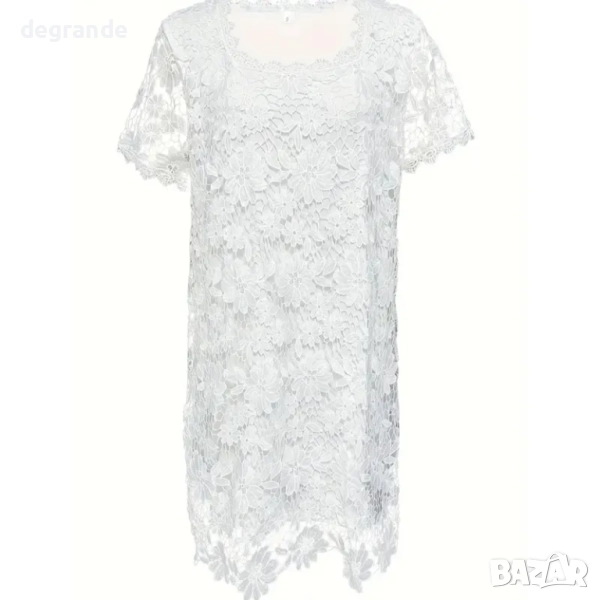 Елегантна Дантелена рокля с къс ръкав и квадратно деколте → Обява 51611042
