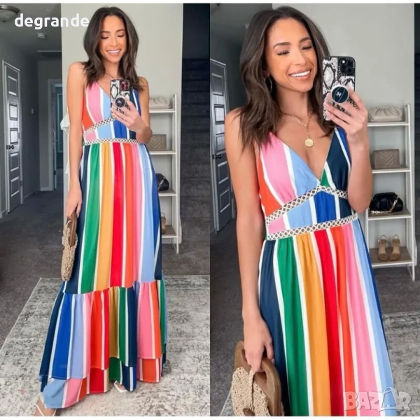 Лятна рокля с презрамки десен на райе → Обява 51611081