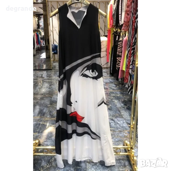 лятна рокля с щампа лице свободен модел без ръкав