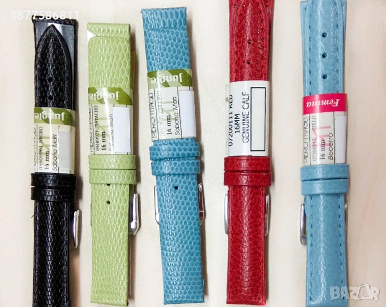 Кожени каишки цветове: черни червени розови бели сини зелени жълти оранжеви кафяви бежови.