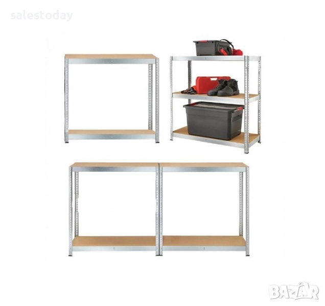 Многофункционален стелаж за съхранение, подходящ за тежки предмети.Има стоманена рамка (горещо поцинкована), която можете да регулирате по ваше желание (височина или успоредно) и 4 рафта, изработени от плоскости с висока плътност (HDF).Съдържа подробни инструкции за монтаж.Препоръчително е да се монтира на стена. Максимално тегло 80 кг Размери на опаковката 30x6x79 см Дължина x Ширина x Височина 75x30x157 см