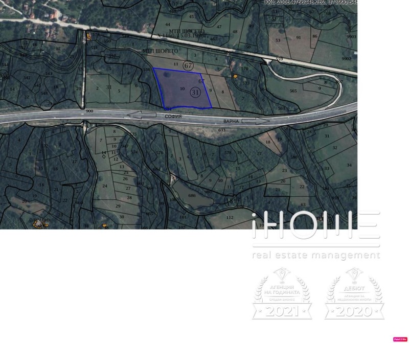 Имотът е извън регулация, но с голям потенциал за промяна на статута и развите на бизнес дейност.