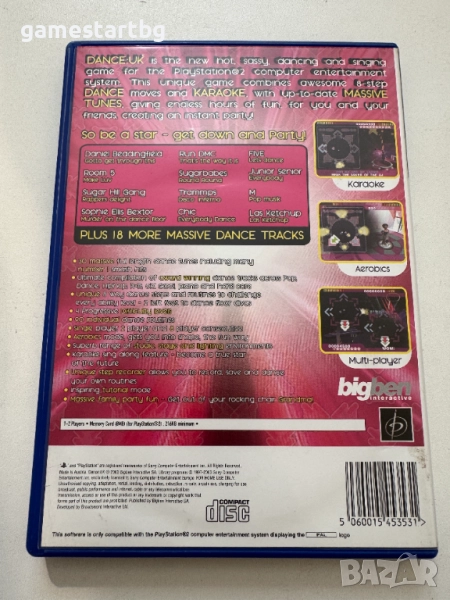 Dance UK за PS2, снимка 1 - Игри за PlayStation - 51614041 Dance UK за PS2, снимка 2 - Игри за PlayStation - 51614041 Dance UK за PS2, снимка 3 - Игри за PlayStation - 51614041 1/3