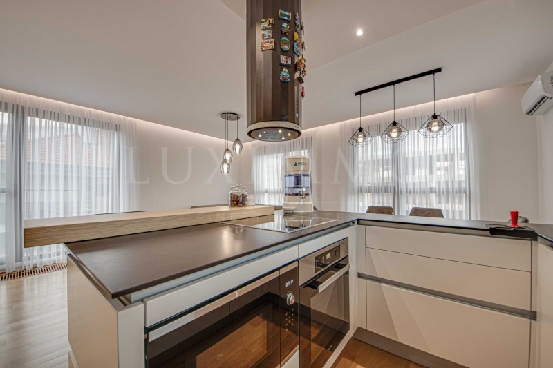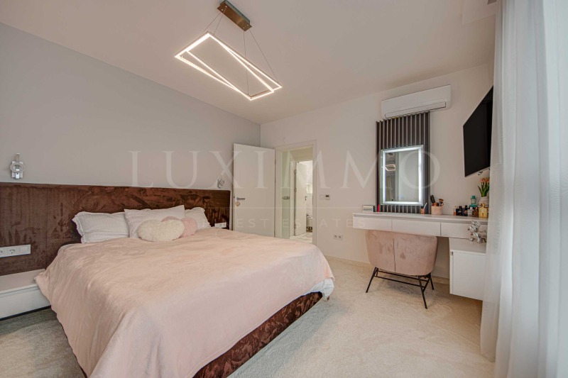 Жилището заема трети етаж от общо четириетажна сграда с 'Разрешение за ползване' от 2021 г. Изложението е юг и запад. От имота се открива панорамна гледка към Витоша планина и околностите. Апартаментът се предоставя напълно завършен по дизайнерски проект и обзаведен с качествени материали и стилни мебели. Дограмата е трислоен петкамерен стъклопакет, с поставени комарници. Подовите настилки са естествен паркет в дневната, висококачестен мокет в спалните и гранитогрес в останалата част на жилището.