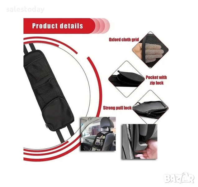 Калъф, който се поставя отстрани на столчето за кола. Позволява ви да съхранявате различни малки предмети и да ги имате под ръка, независимо дали сте водачът и пътникът отпред или пътникът на задните седалки. Лесно се регулира с практичните гумени ленти, следвайки инструкциите на опаковката.