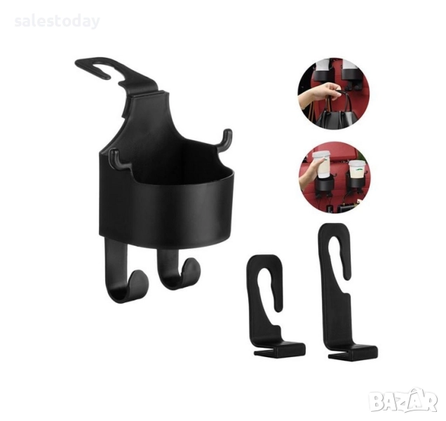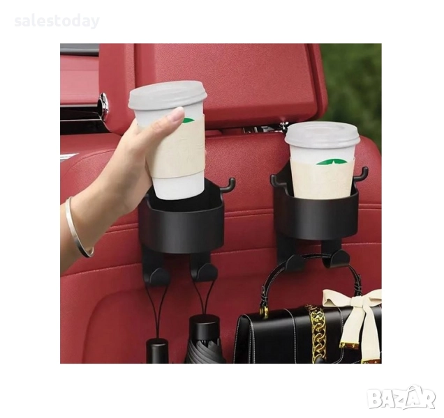 Поставка за чаши за кола в черно с 2 куки. Лесна за монтаж и подходяща за различни чаши и кутии.