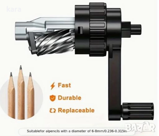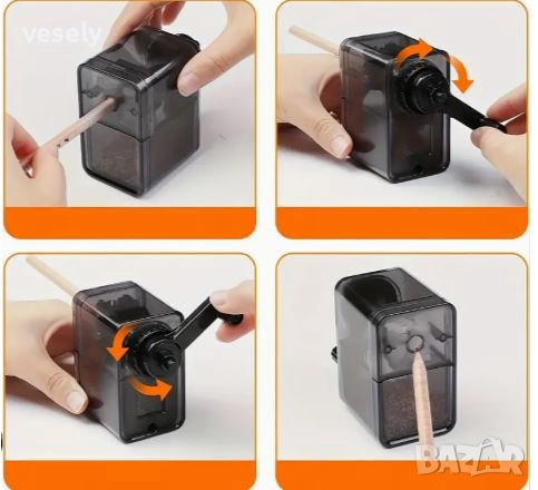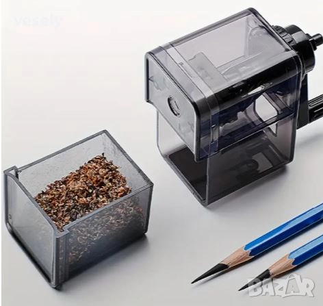 вал задвижван от стбилна ръчка безпроблемно подостря моливите.