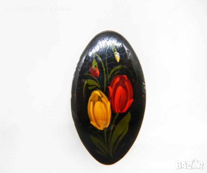 Стара Руска Брошка Лалета Цветя Ръчнорисувана → Обява 51614699