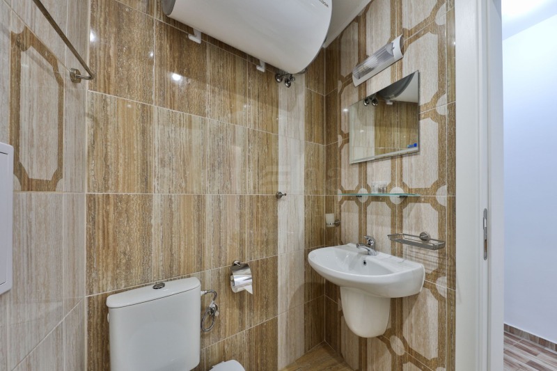 оборудвана баня с фаянс и аксесоари.
