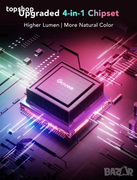 4-в-1 RGBIC+ технология: LED лентите Govee използват независимо IC управление, за да показват едновременно множество цветове на една лента. Подобреният 4-в-1 чипсет показва по-естествени, по-богати цветове и по-висока яркост в лумена.