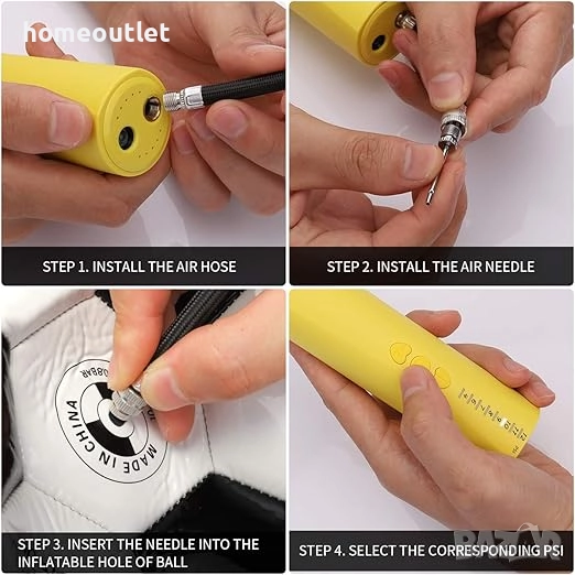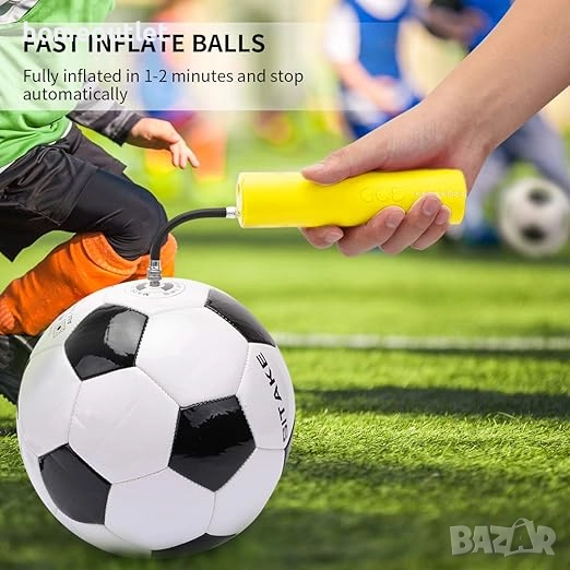 Може да напомпва баскетболни, футболни, волейболни, ръгби, водни и хандбални топки.