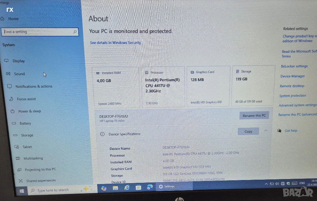 Процесор: Intel Pentium 4417U (2.30 GHz) – икономичен и надежден.