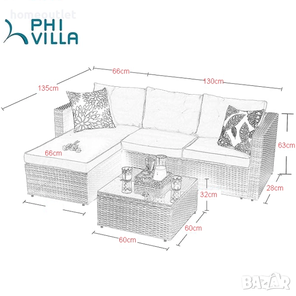 Добавете елегантен и уютен щрих към вашето външно пространство с този модерен градински комплект PHIVILLA.