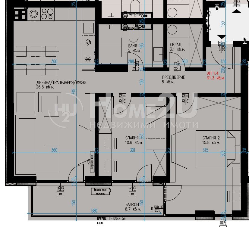 Home2U ви представя тристаен апартамент разположен на първи етаж над партер във висококачествена сграда с Акт 16. Апартаментът се намира в сграда с високо качество, модерна визия и с контрол на достъп. Апартамента e със западно изложение и е със следното функционално разпределение: входно антре, баня с тоалетна, тоалетна, спалня, втора спалня и дневна с общ голям балкон с излаз от трите помещения, за Ваше улеснение прилагаме схема на разпределение. Локацията на комплекса е най-комуникативната за района, а именно - 150м от държавна детска градина, 5 мин пеша от магазин Фантастико, Кауфланд, 5 мин пеша до бъдеща метростанция, 3 мин от парк НСА, 2 минути от Зимния дворец и бърза връзка към бул. Симеоновско шосе и Околовръстен път. Сградата ще бъде с ТЕЦ и изводи за климатици във всяко помещение и фиксирани позиции на фасадата. Има възможност за закупуване на допълнително паркомясто. За повече информация или да запазите час за оглед, моля обадете се сега и цитирайте този код: 134065