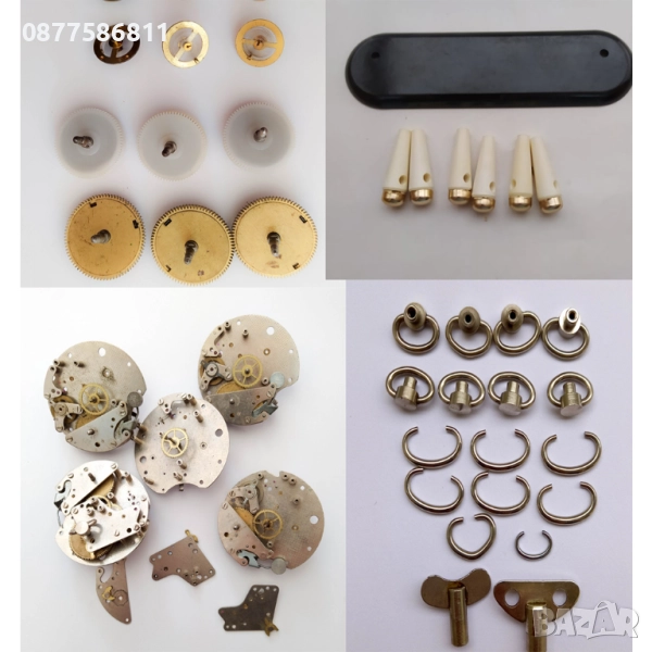 Разполагаме с богат набор от части за механични и кварцови часовници, будилници, стенни часовници: Стъкла, Баланси, Оси, Ремонтоари, Коронки, Анкери, Пружини, Колелета, Колела Уплътнения за заден капак, Уплътнители, Патенти и др.