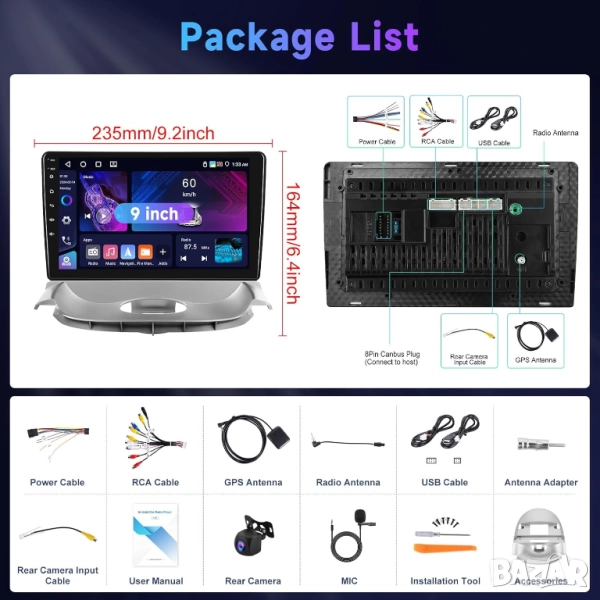 Супер промоционална цена! Директно от вносител. В наличност. Пълен комплект, готов за монтиране. Включена е и качествена водоустойчива камера с висока AHD резолюция и широк ъгъл на видимост. Също така е включен 6-метров кабел към нея в комплекта! По ваше желание може да добавите и втора предна камера.