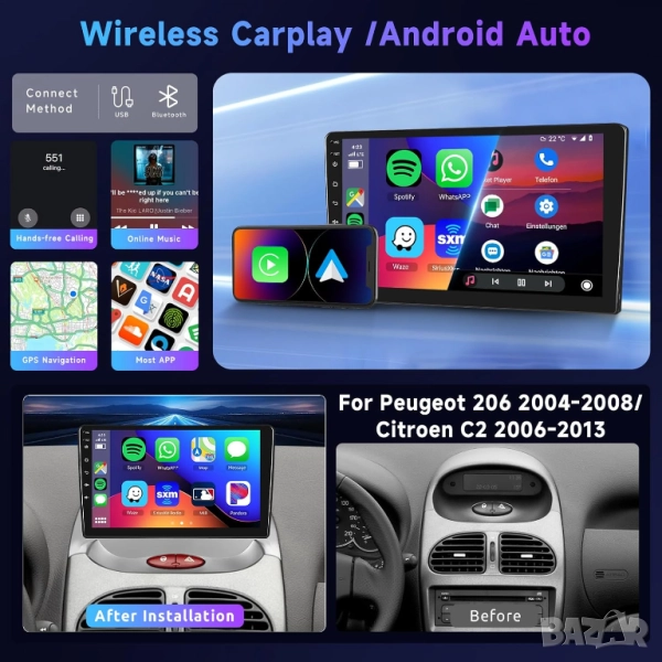 2GB+64GB цена 329.90лв, 4-ядрен процесор, Android Auto, CarPlay, Wi-Fi, RDS, AHD камера